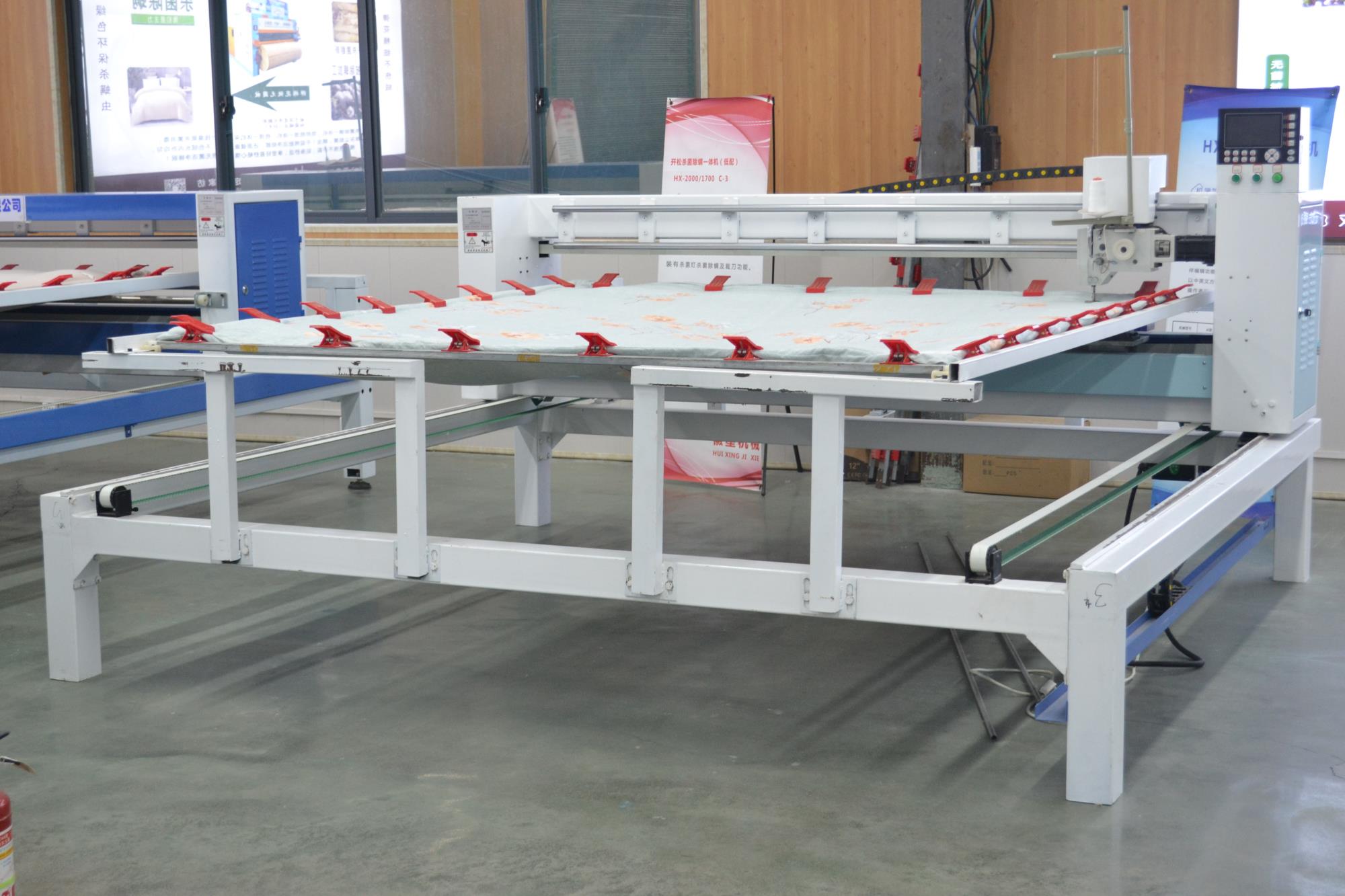 整機運行穩定,噪音小,傳動結構壽命長,斷線檢查,面線段線自動停機,工作燈,穿線更方便,絎縫精度高,噪音接近無聲,液晶顯示器,小控制柜,占地小;配備新一代絎縫機專用電腦,內部實時檢測,確保不拉壞被子,電腦、電機出現故障自動停機,同時電腦畫面顯示故障內容,同時自帶幾百種常用花型。